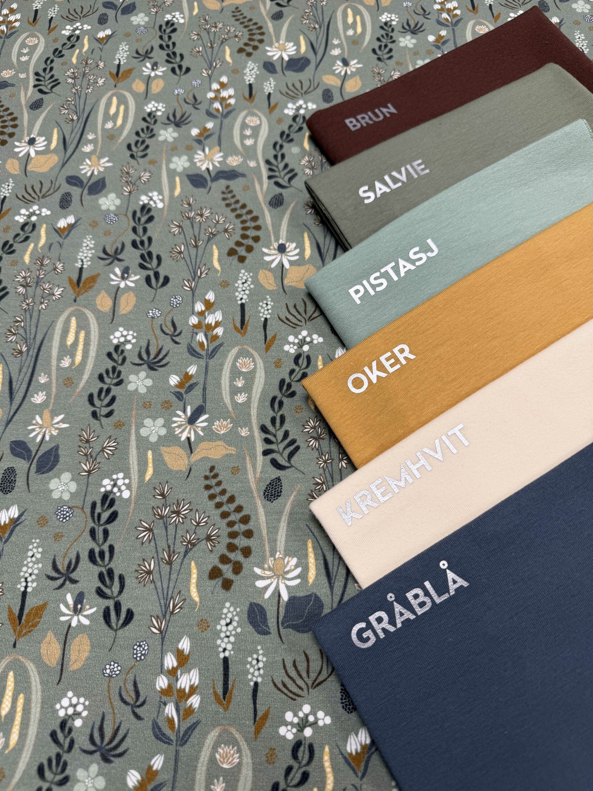 GOTS-sertifisert (økologisk dyrket) og Oeko-tex sertifisert ensfarget bomullsjersey av høy kvalitet. Stoffet er produsert i Litauen. Stoffet er trådfarget, så det har samme farge på forsiden og baksiden (i motsetning til trykte stoffer). Stoffet matcher den ensfargede jerseyen og den ensfargede ribben med samme navn.
