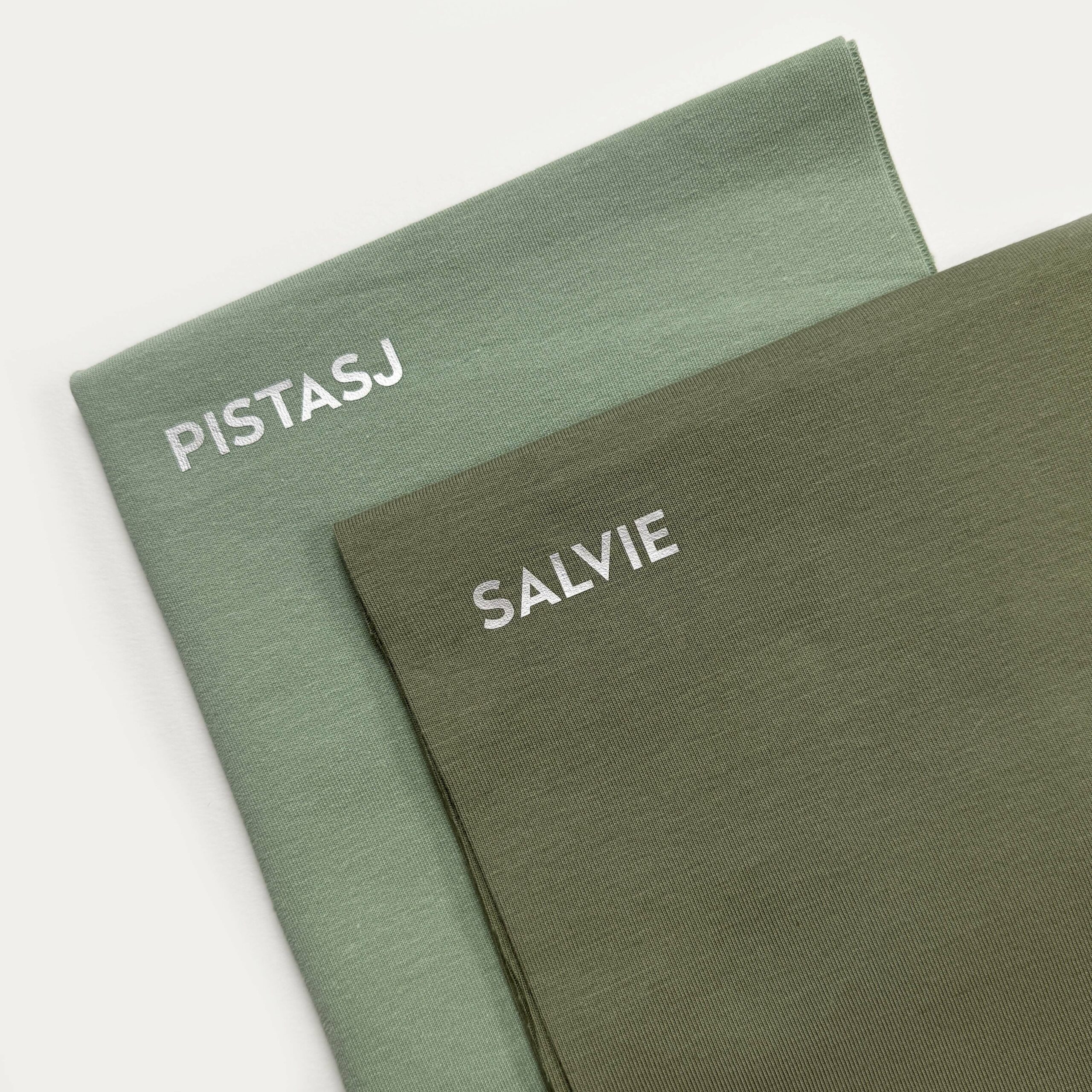GOTS-sertifisert (økologisk dyrket) og Oeko-tex sertifisert ensfarget bomullsjersey av høy kvalitet. Stoffet er produsert i Litauen. Stoffet er trådfarget, så det har samme farge på forsiden og baksiden (i motsetning til trykte stoffer). Stoffet matcher den ensfargede jerseyen og den ensfargede ribben med samme navn.