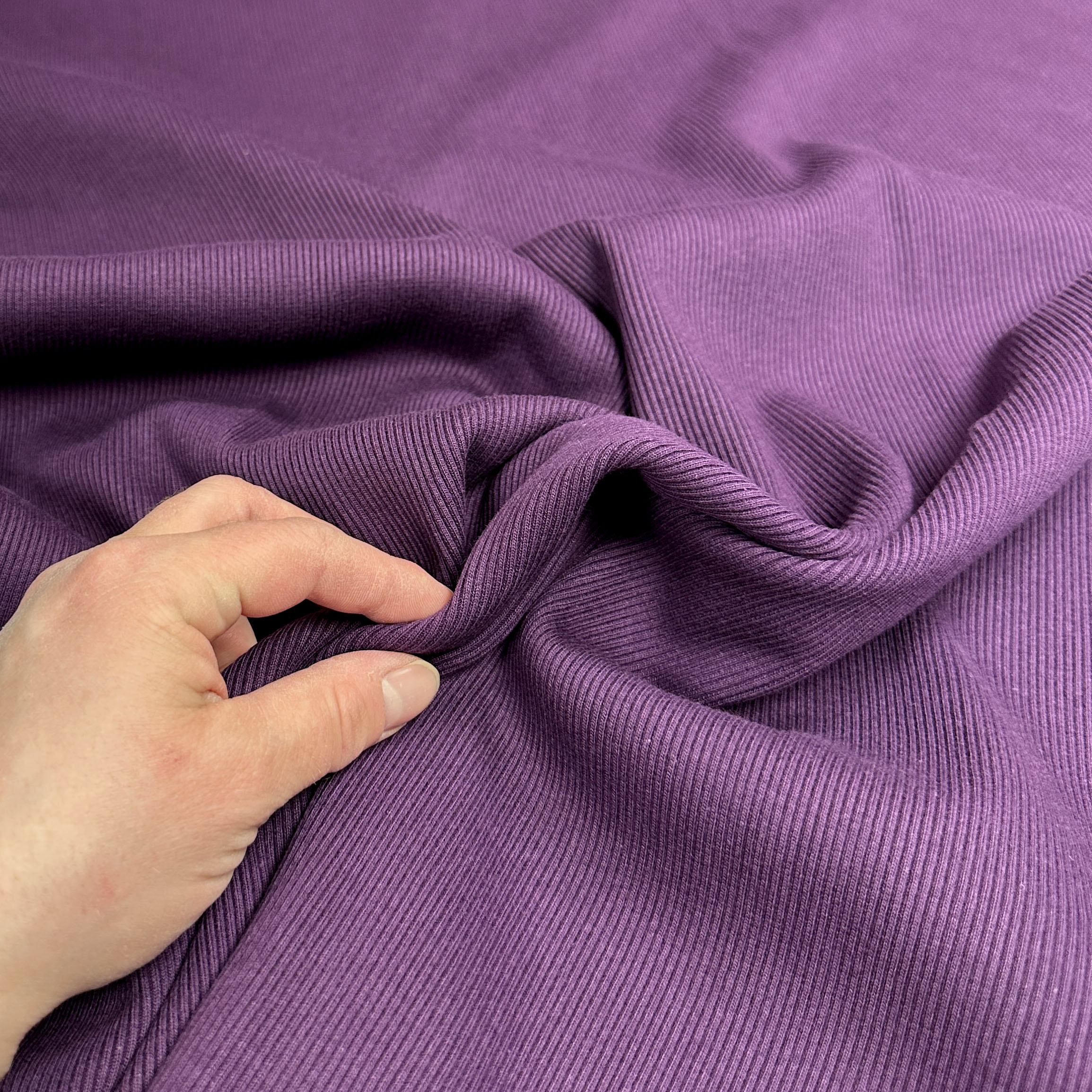 GOTS grovstrikket ribb – MØRK LILLA / pris per 0,5 m