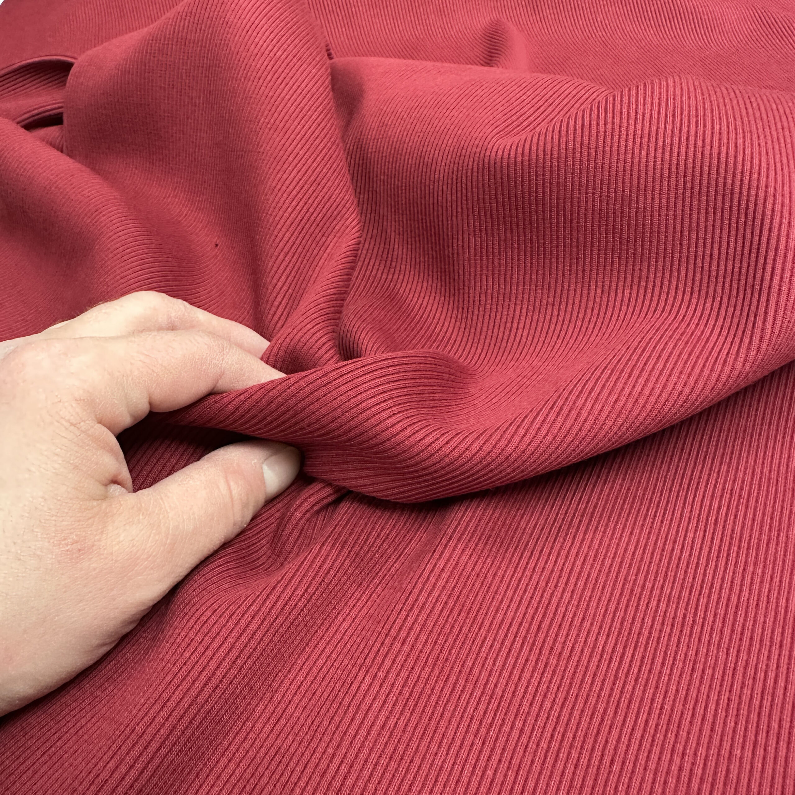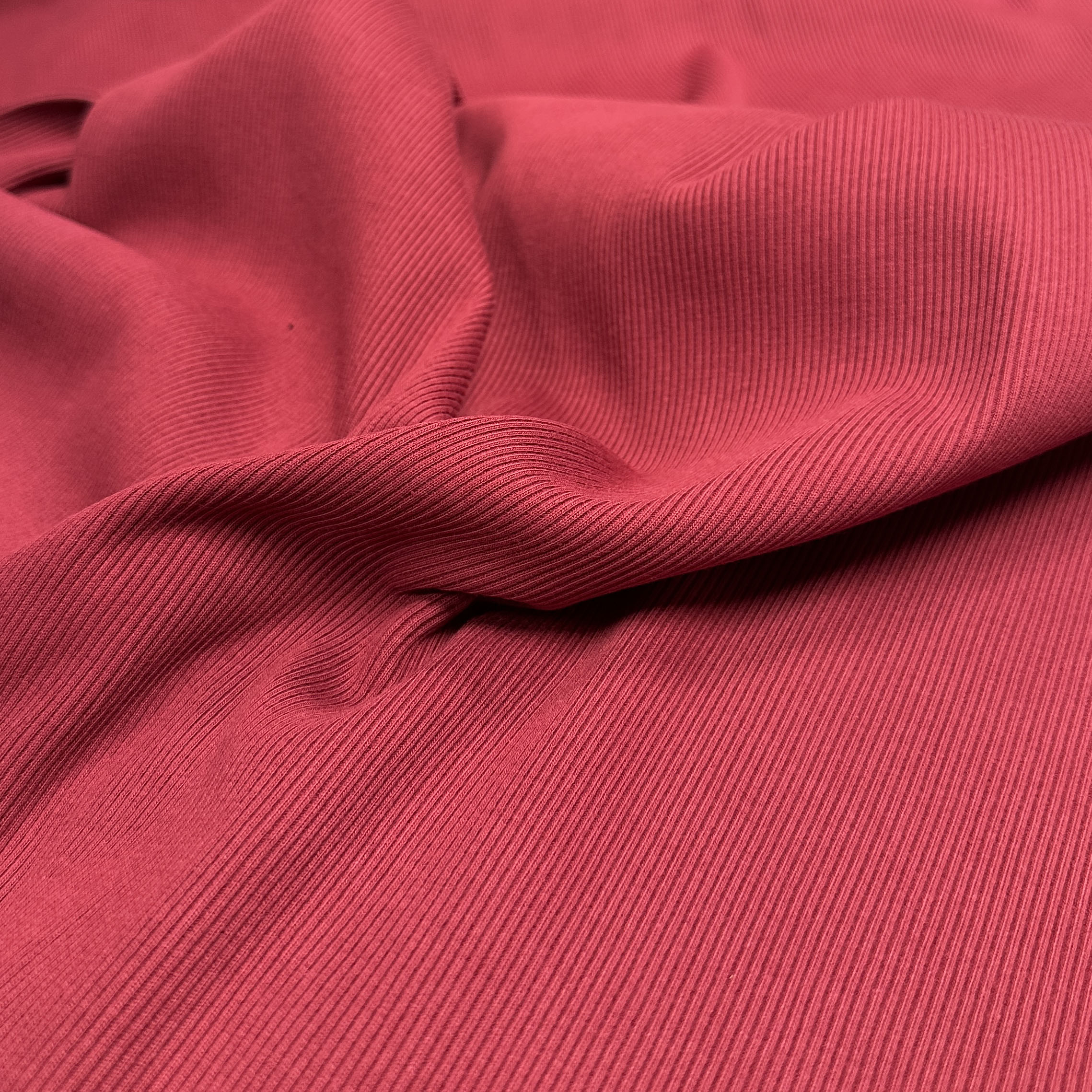 GOTS-sertifisert (økologisk dyrket) og Oeko-tex sertifisert grovstrikket ribb av høy kvalitet. Stoffet er produsert i Litauen. Stoffet er trådfarget, så det har samme farge på forsiden og baksiden (i motsetning til trykte stoffer). Stoffet matcher den ensfargede jerseyen og den ensfargede french terryen med samme navn.