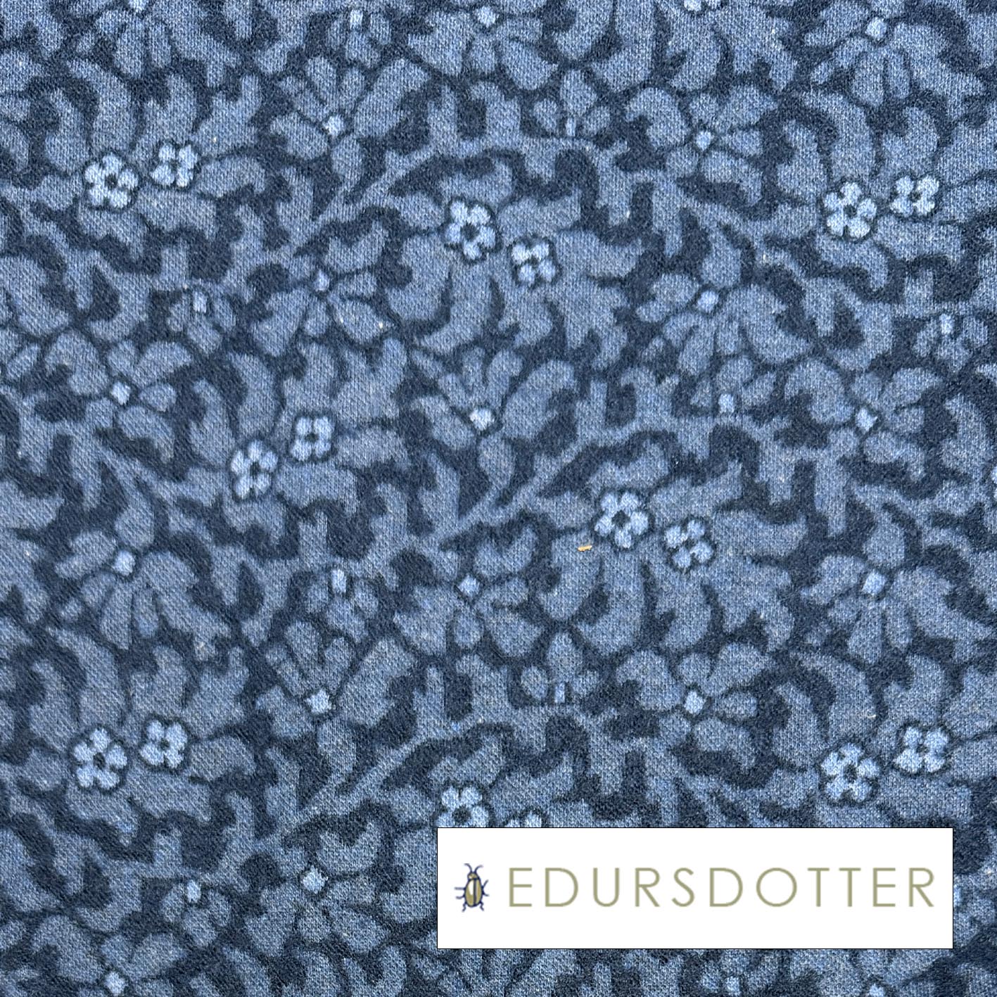 Christina Edursdotter har designet stoffet, og strikket det selv, i sitt verksted i Kinna i Sverige. Det vil variere litt hva jeg får inn av farger av disse stoffene, fordi det hun har av garn og ulike innfarginger varierer. Garnet hun bruker vil også variere noe i tykkelse (fra 190-250 GSM). Alt er naturmaterialer, og alle stoffene er forhåndvasket og vil ikke krympe.