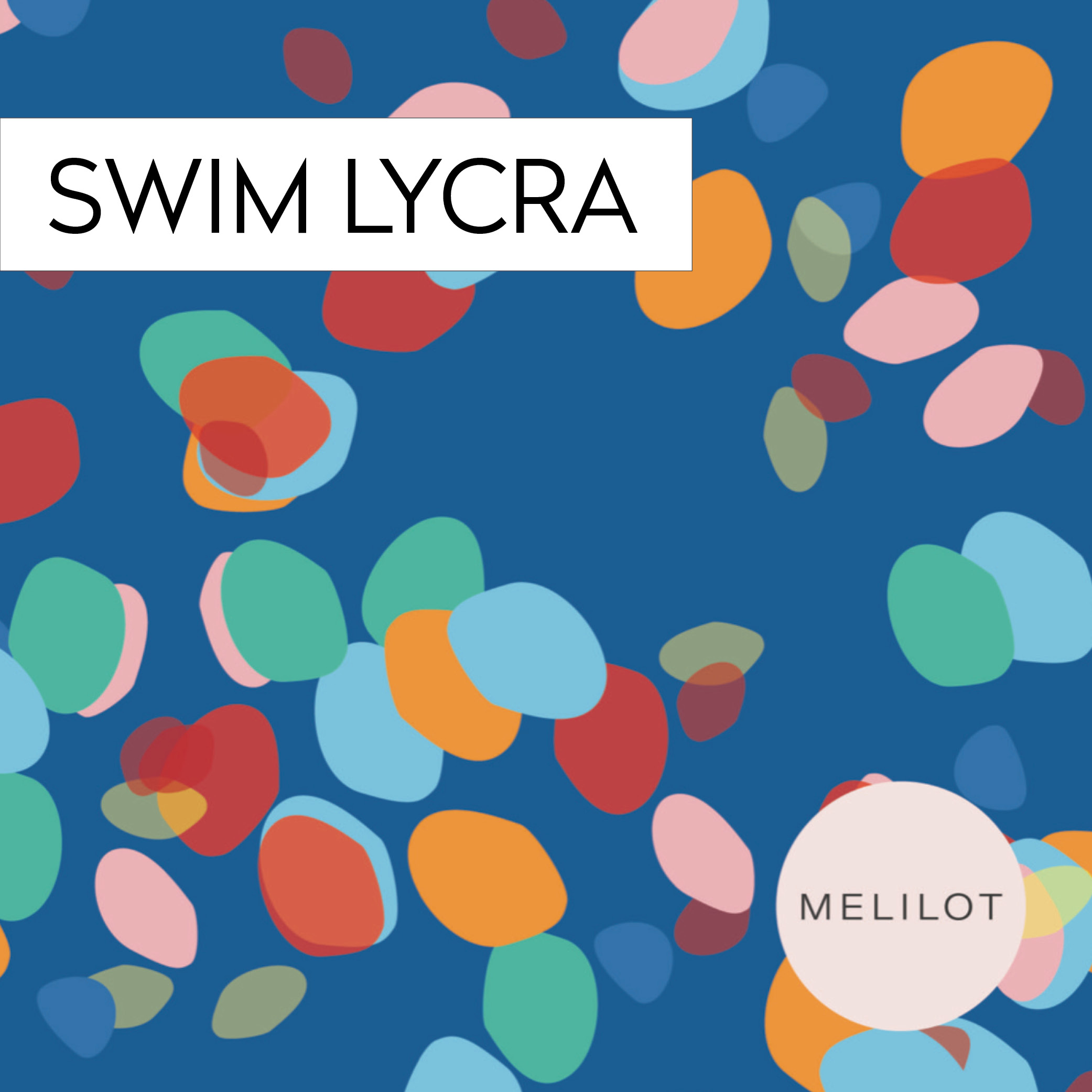 Swim lycra designet av Mari Melilot. Perfekt til badetøy! Dette badetøystoffet er tynnere og glattere enn swim lycraen vi har hatt tidligere. Stoffet matcher jerseystoffet med samme navn.