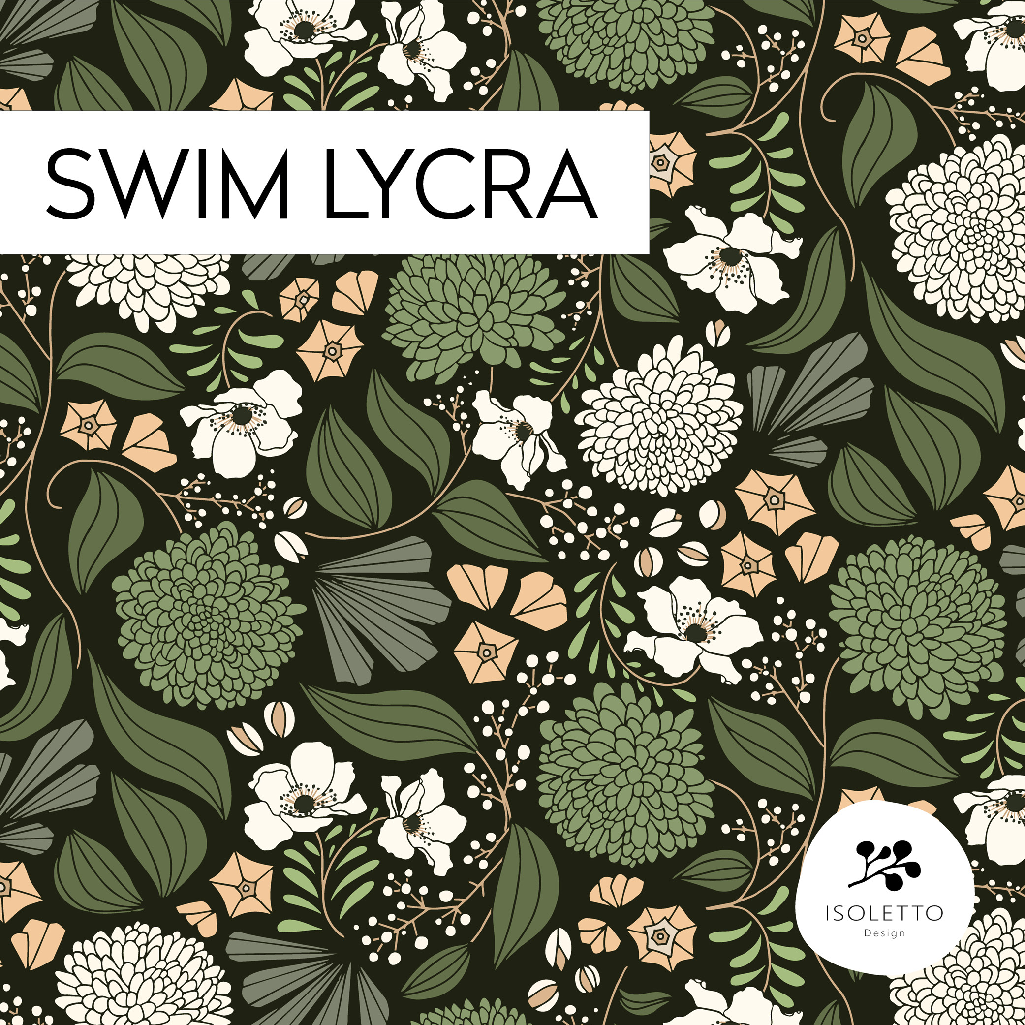 Swim lycra designet av Isoletto design for Ida Victoria. Perfekt til badetøy! Dette badetøystoffet er tynnere og glattere enn swim lycraen vi har hatt tidligere. Stoffet matcher jerseystoffet med samme navn.